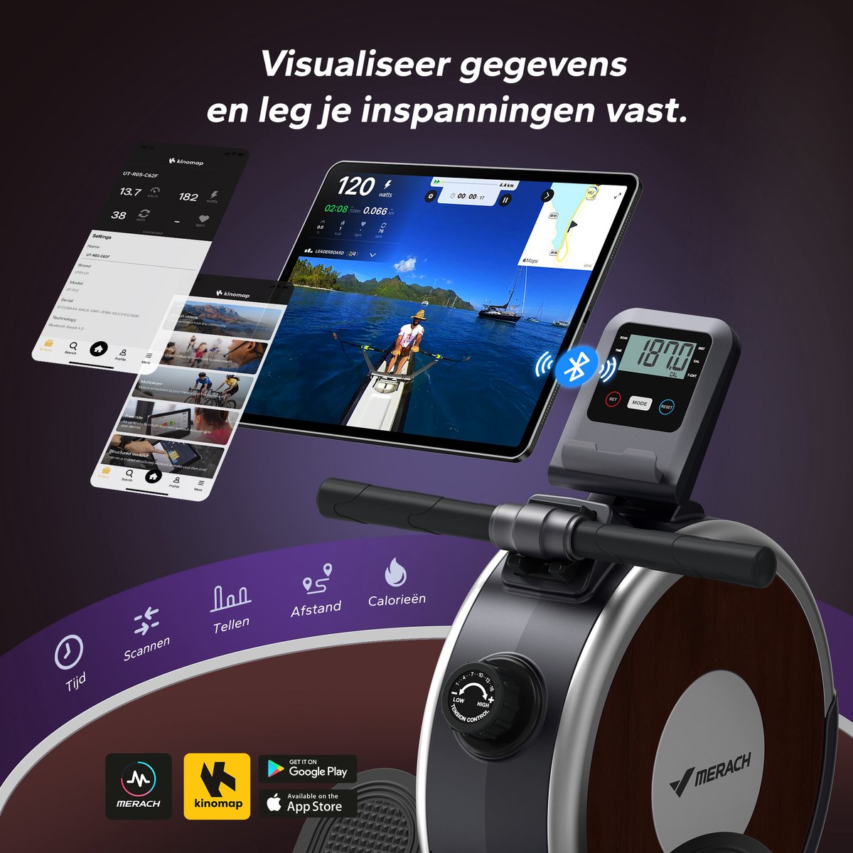 De MERACH is ontworpen voor full-body trainingen en activeert volgens productinformatie tot 90% van de spiergroepen. Met 16 weerstandsniveaus en een 5,5 kg vliegwiel kun je zowel cardio- als krachtgerichte sessies doen, van licht intervalwerk tot zwaardere krachttraining.